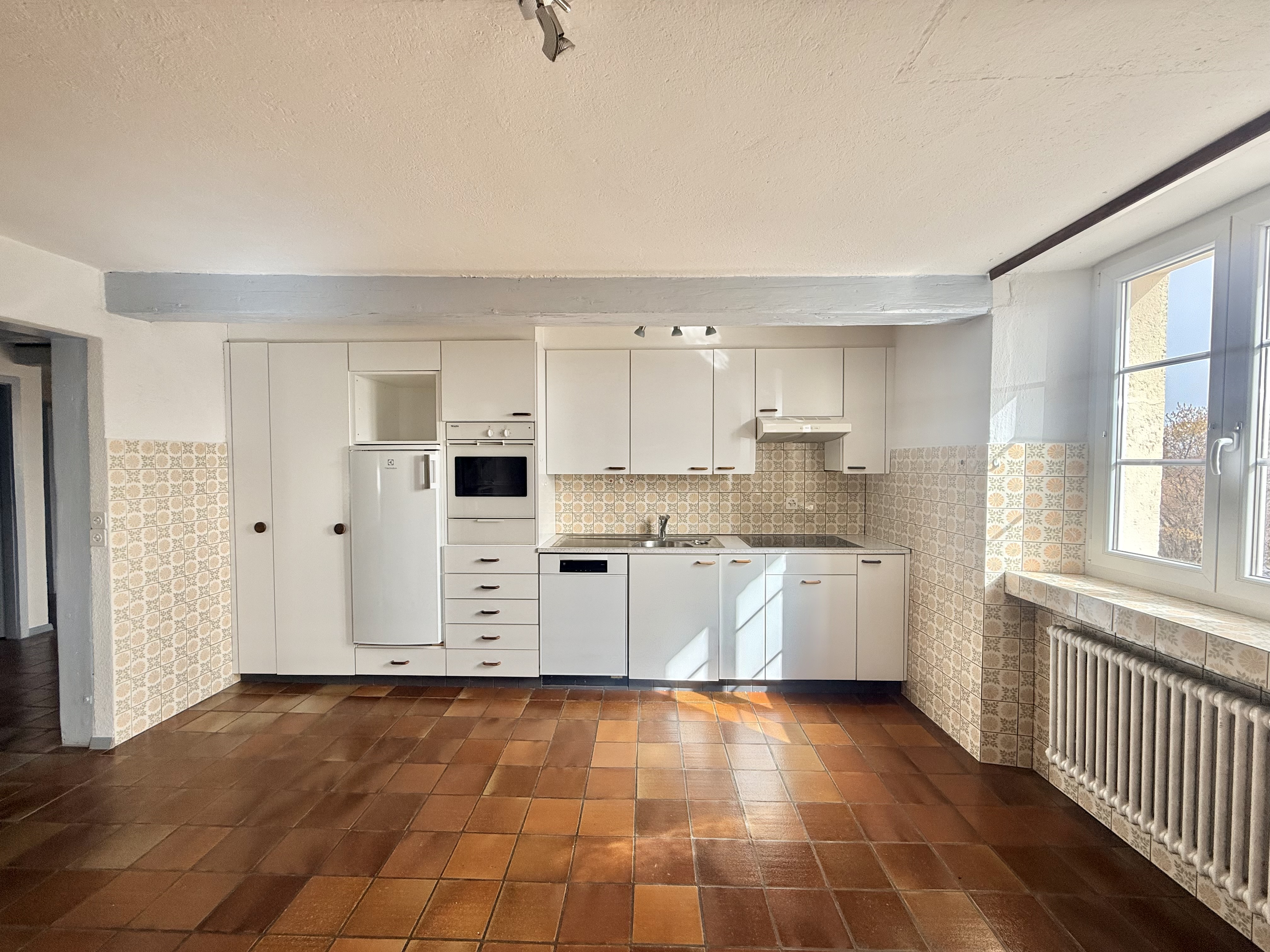 Situé au 1er étage d’une ancienne ferme rénovée, cet appartement de 5,5 pièces d’une surface habitable d’environ 139 m² offre un cadre de vie chaleureux et plein de caractère. Il se trouve à proximité de l’école, des commerces et des transports publics, dans un environnement familial et calme.