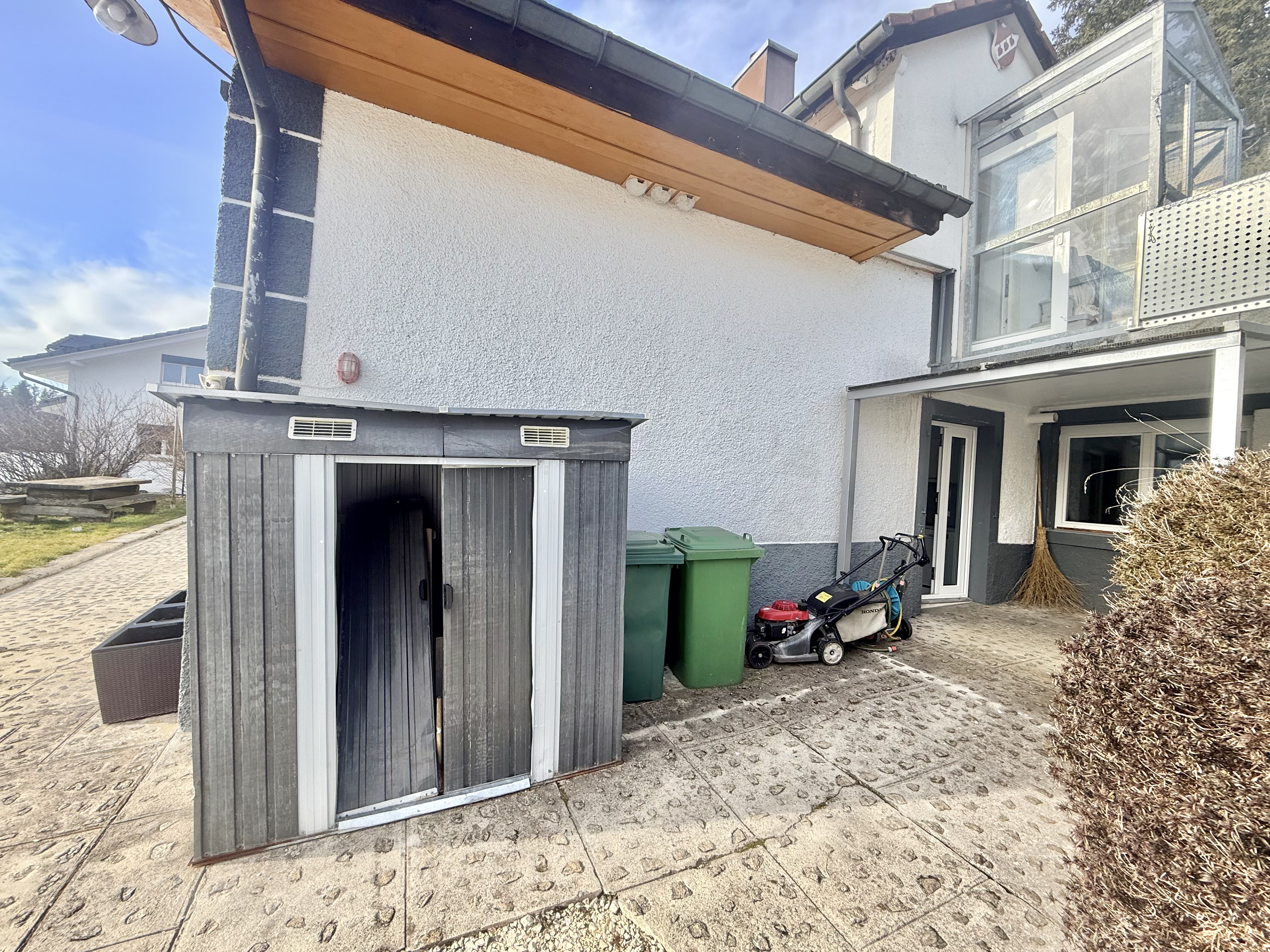 - Cabanon extérieur attenant à l’entrée, parfait pour le rangement des outils de jardin ou autres équipements