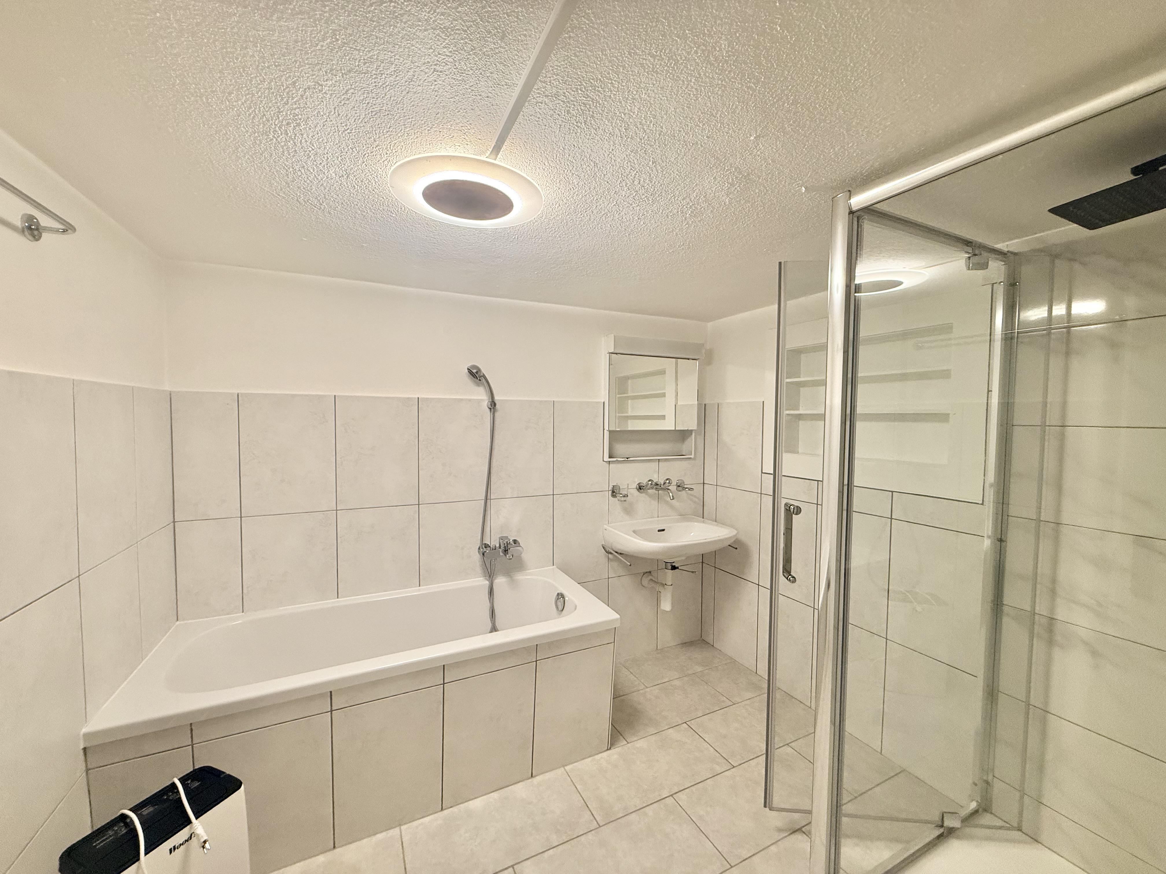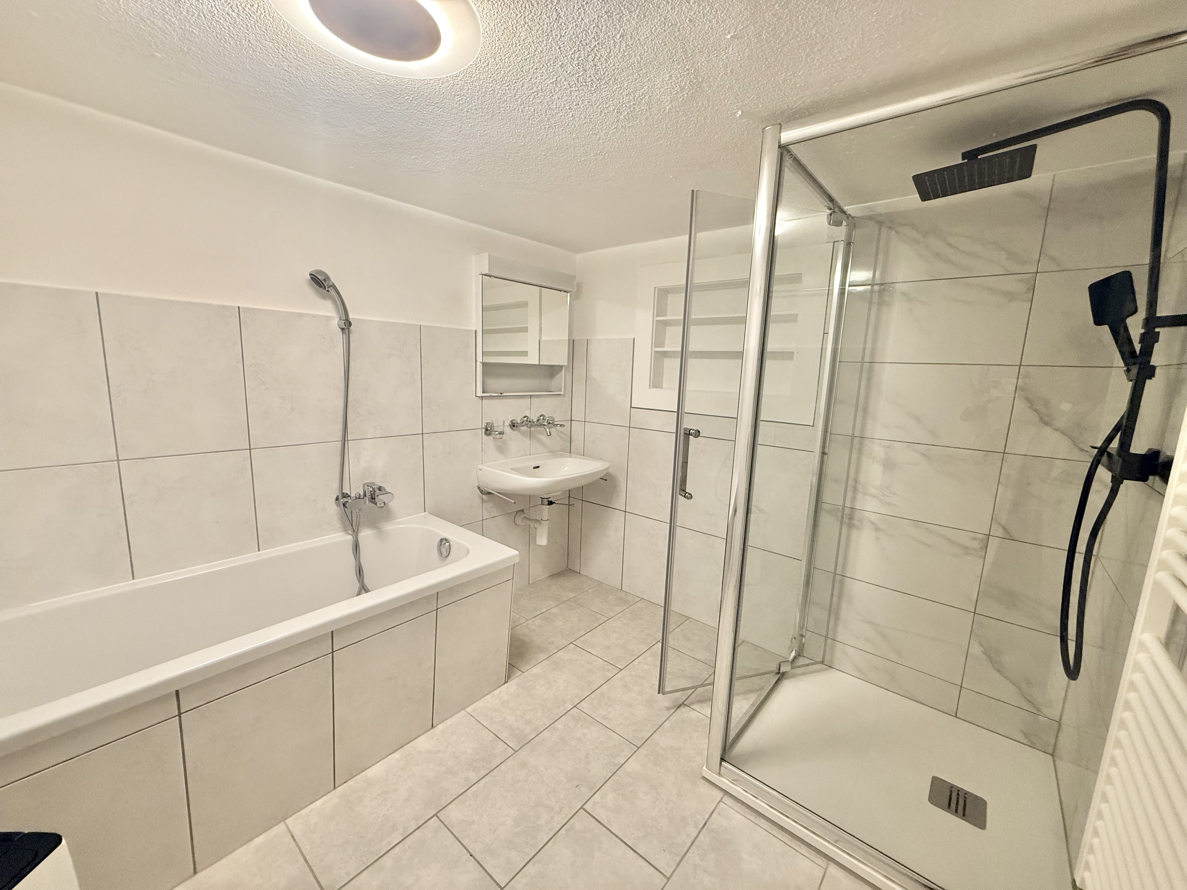 - Grande salle de bains avec baignoire et douche